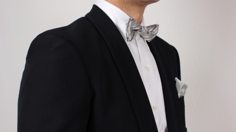 If the dress code states “Black Tie,” the standard rule is a black bow tie with a black cummerbund.