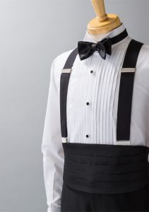 Matching the tuxedo accessories with the color of the escorted lady’s dress can create a very elegant look.
